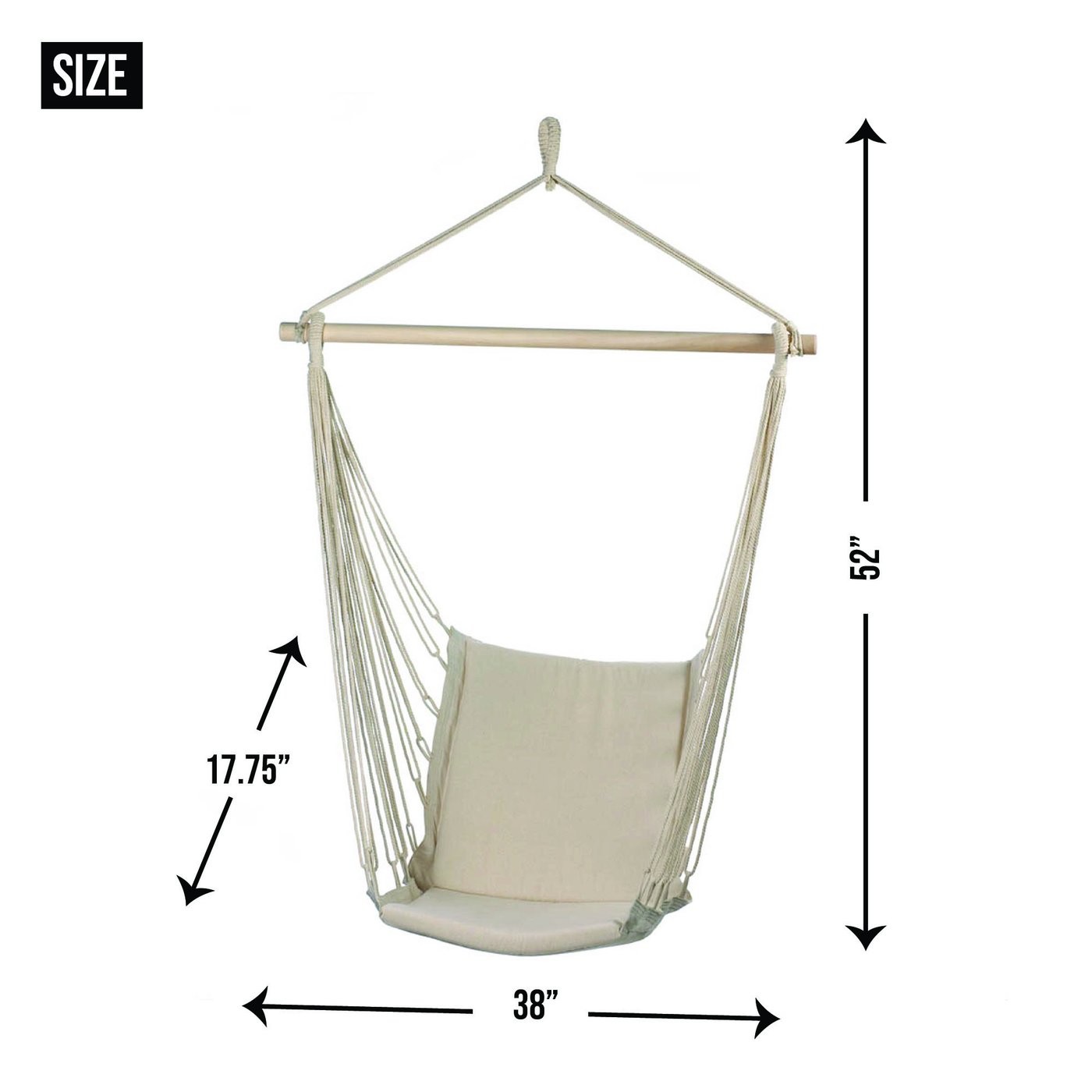 • A relaxing way to retreat from the day! Soft cotton padding and gentle rocking motion cradle you in exceptional comfort. Maximum weight limit: 200 lbs. Seat: 10½" wide.