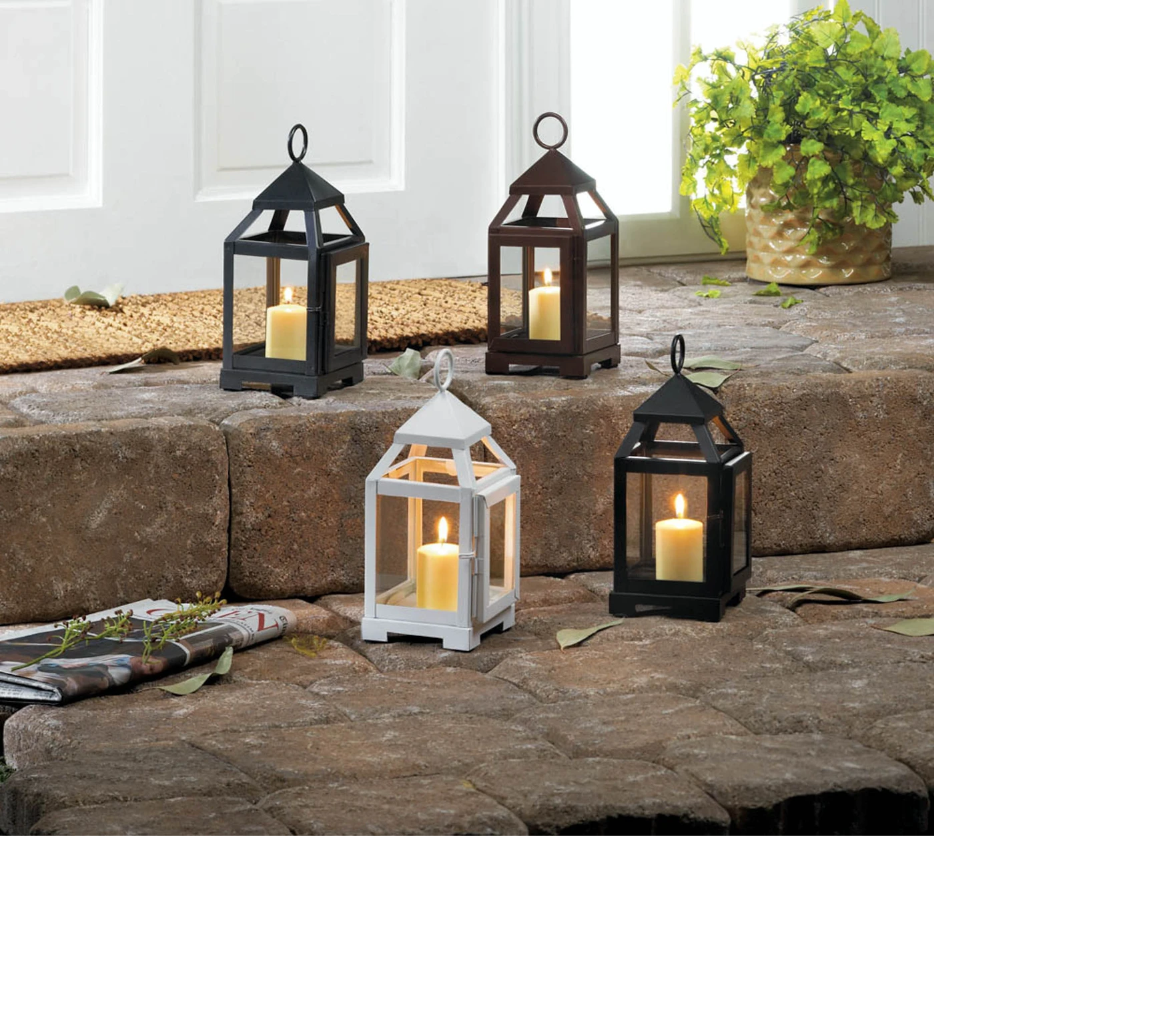 • Add some light to your small space with this cool little lantern! The metal framework is sleek and contemporary with its angular lines and white finish. The clear glass panels allow the shimmering light from a little candle shine bright.
