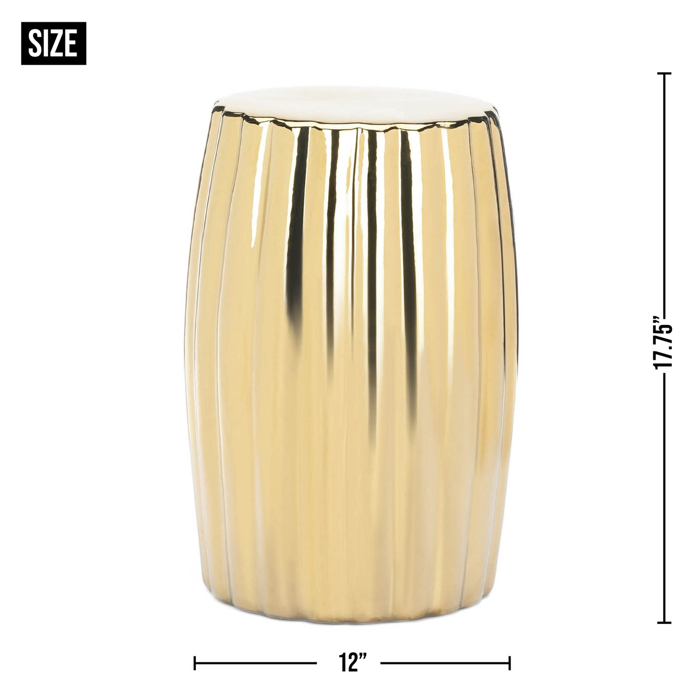 • Add a hint of shine to your décor with this decorative gold stool. Made from durable ceramic material, this gold stool can be displayed on its own or used as a modern plant stand. The sleek gold finish and smooth surface will add a bold contemporary look to your living room, office or bedroom space. Maximum weight limit: 220 lbs.