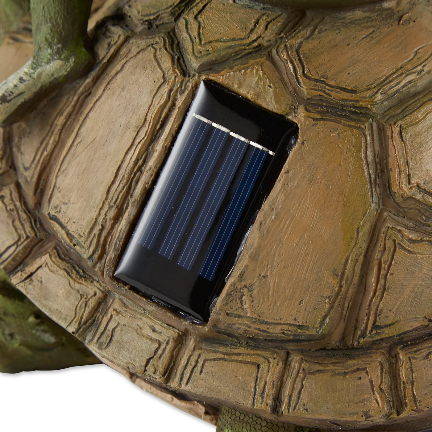 • Make your garden look like a whimsical place filled with magic and wonder with this adorable statue of a charming frog riding a turtle. This adorable solar statue is a great addition to your front walk, garden, or patio.