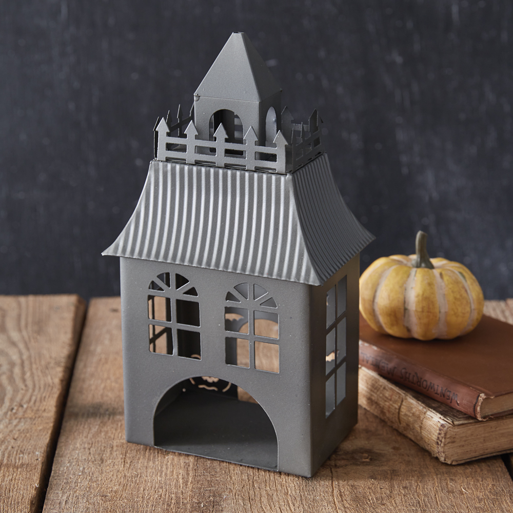 Bring a spooky touch to a home with our Halloween Houses Collection. Featuring bats and a jack-o-lantern in a ghastly tower, this luminary is sure to scare this season. This tower is made of metal and features an area to insert a tealight, not included. This item would be great displayed in a centerpiece, alone, or with any of our other Halloween House luminaries. Each house includes four surface protective pads.