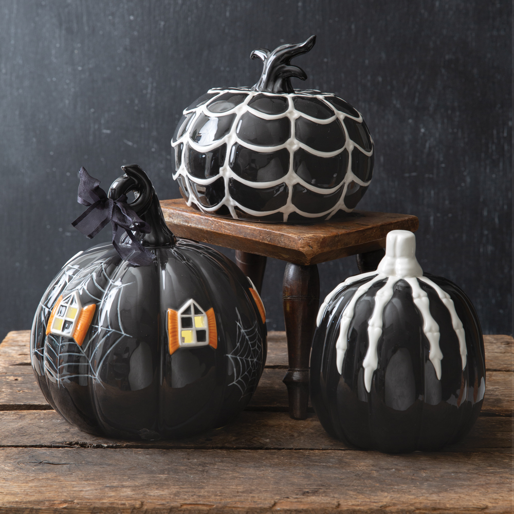 Embrace the spirit of the season with a pumpkin that transcends the ordinary. Whether placed as a centerpiece on your dining table or displayed on your mantel, this Porcelain Spiderweb Pumpkin adds a sophisticated and bewitching ambiance to any space.